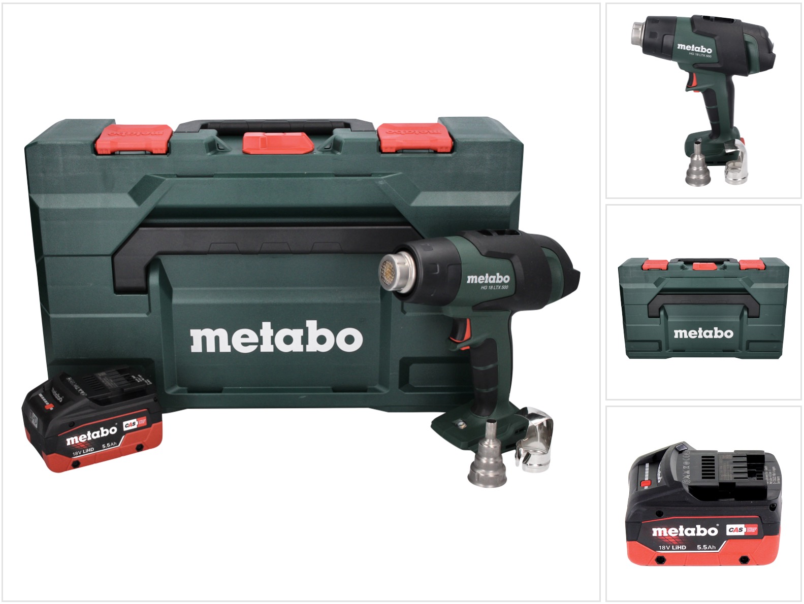 Metabo HG 18 LTX 500 Akku Heißluftgebläse 18 V 300 – 500 °C + 1x Akku 5,5 Ah + Ladegerät + MetaBox