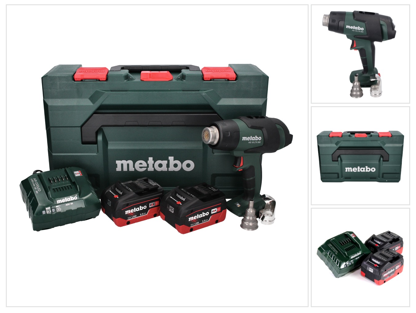Metabo HG 18 LTX 500 Akku Heißluftgebläse 18 V 300 – 500 °C + 2x Akku 5,5 Ah + Ladegerät + MetaBox
