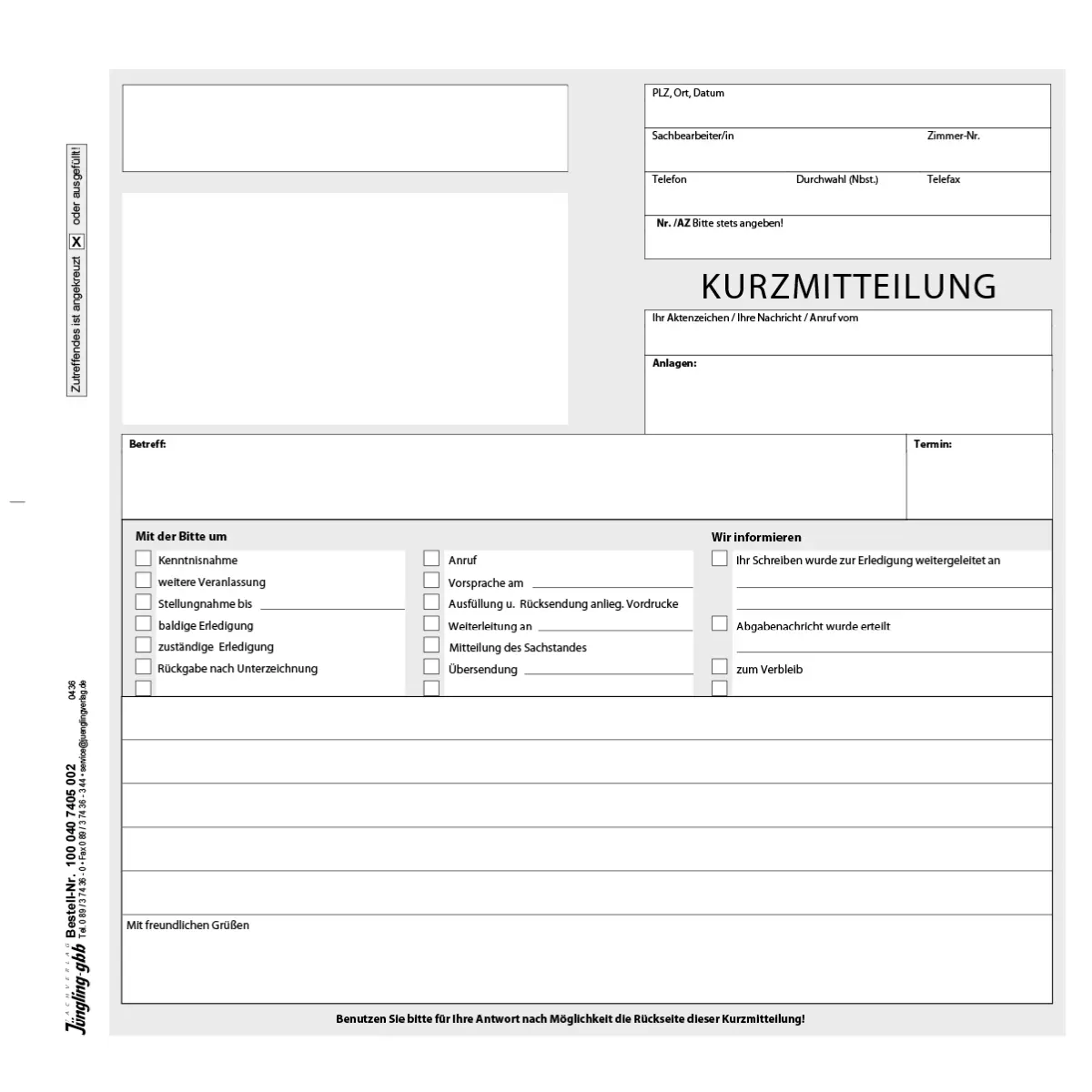 Kurzmitteilung, 2/3 DIN A4, 2-fach SD, 25 Satz