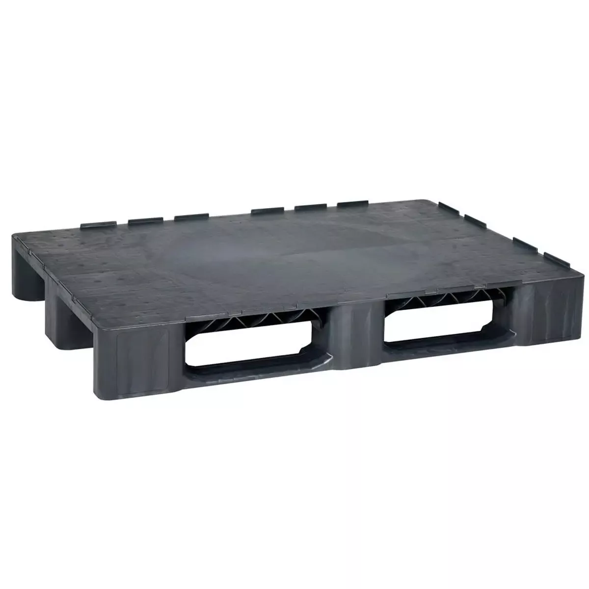 Kunststoffpalette, PE-RE, schwarz, Oberdeck geschl., mit Rand, 3 Kufen, BxTxH 800x1200x165mm, Traglast stat/dynam/Regal