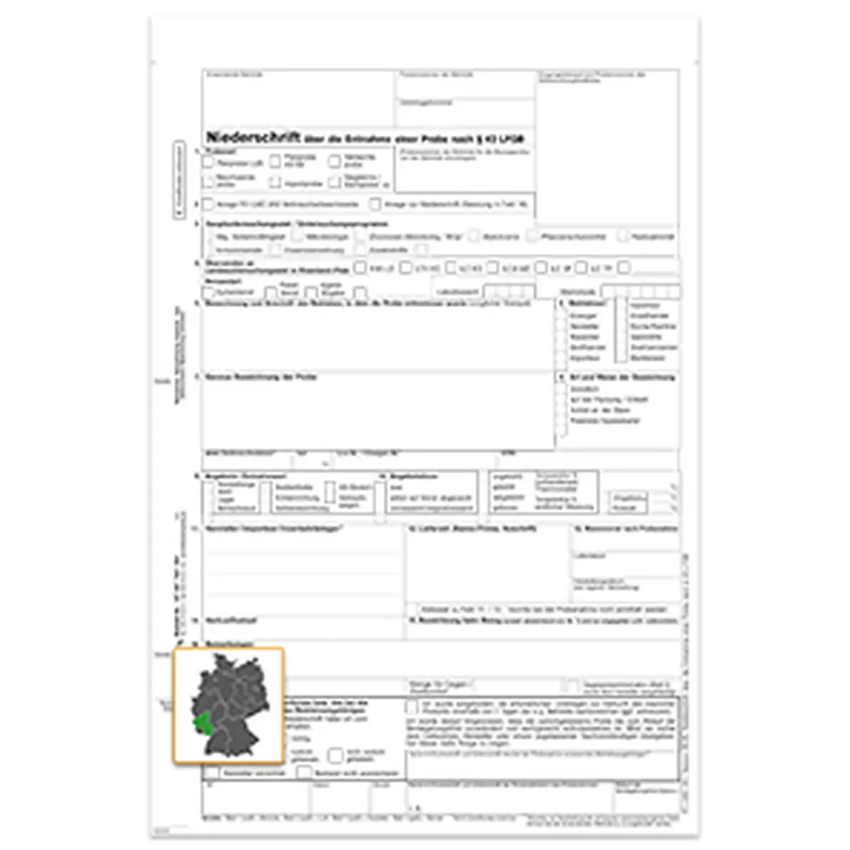 Lebensmittel-Probenahmeniederschrift, § 43 LFGB, Version 06.00, A4, 4fach, SD, 25 Satz
