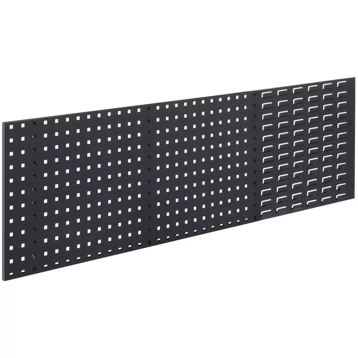 Loch-/Schlitzplattenkombination: 2/3 Lochplatte, 1/3 Schlitzplatte, BxH 1500×450 mm, RAL 7016