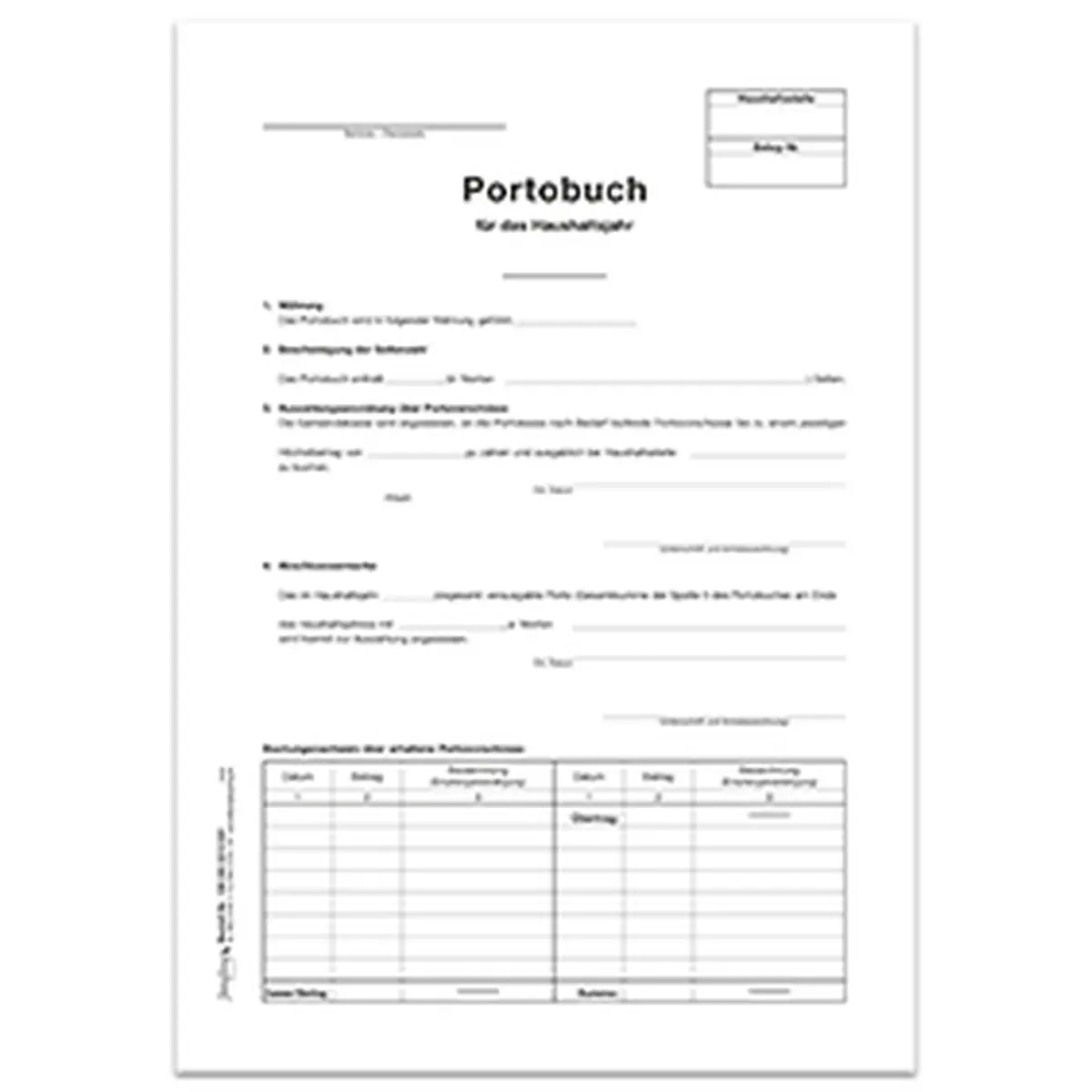 Portobuch – Titelbogen, A4, 4-seitig, 10 Stück