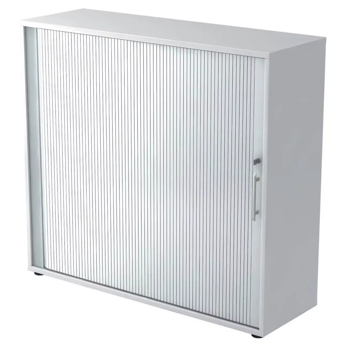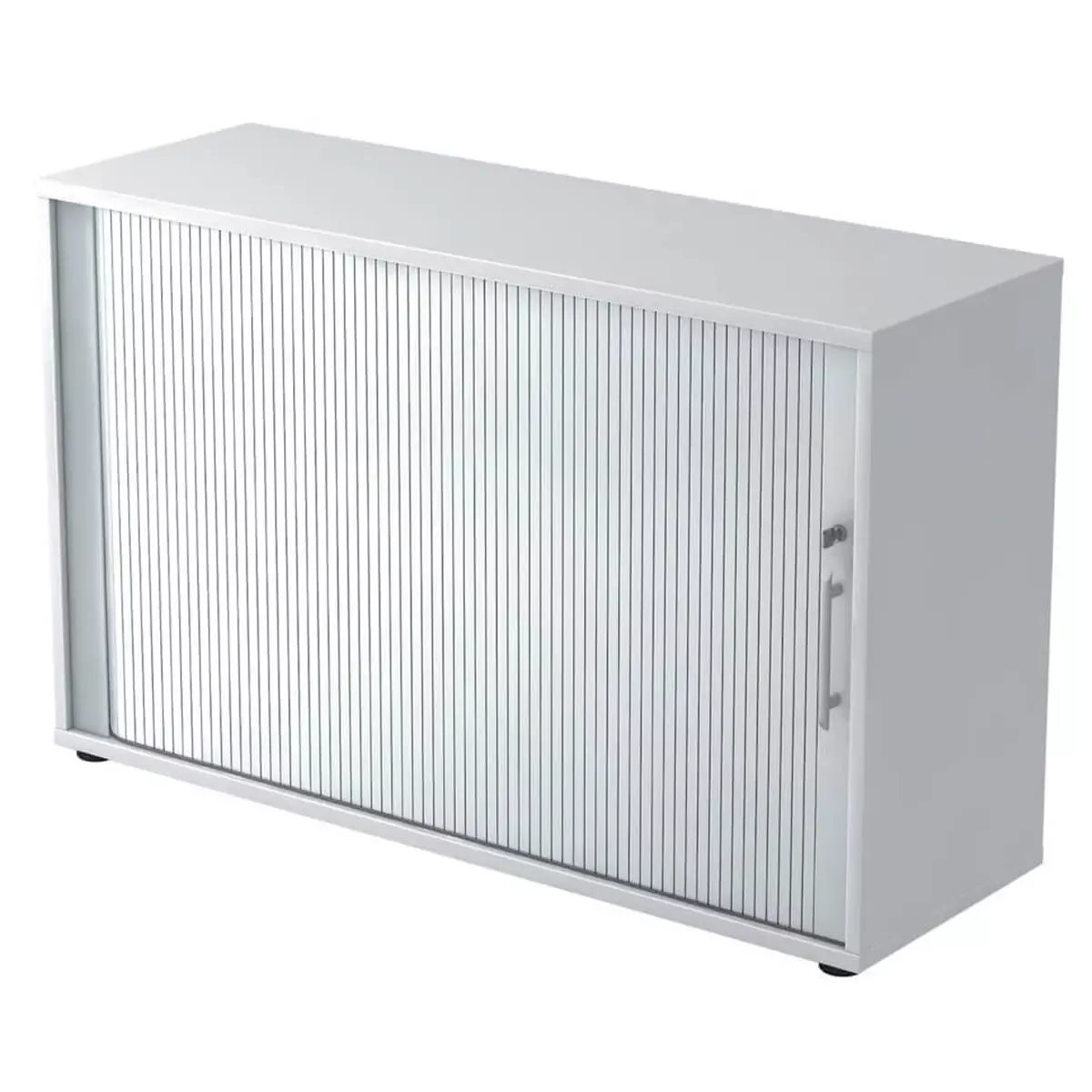 Rollladenschrank – 2OH, 120 cm, Relinggriff, Weiß/Silber