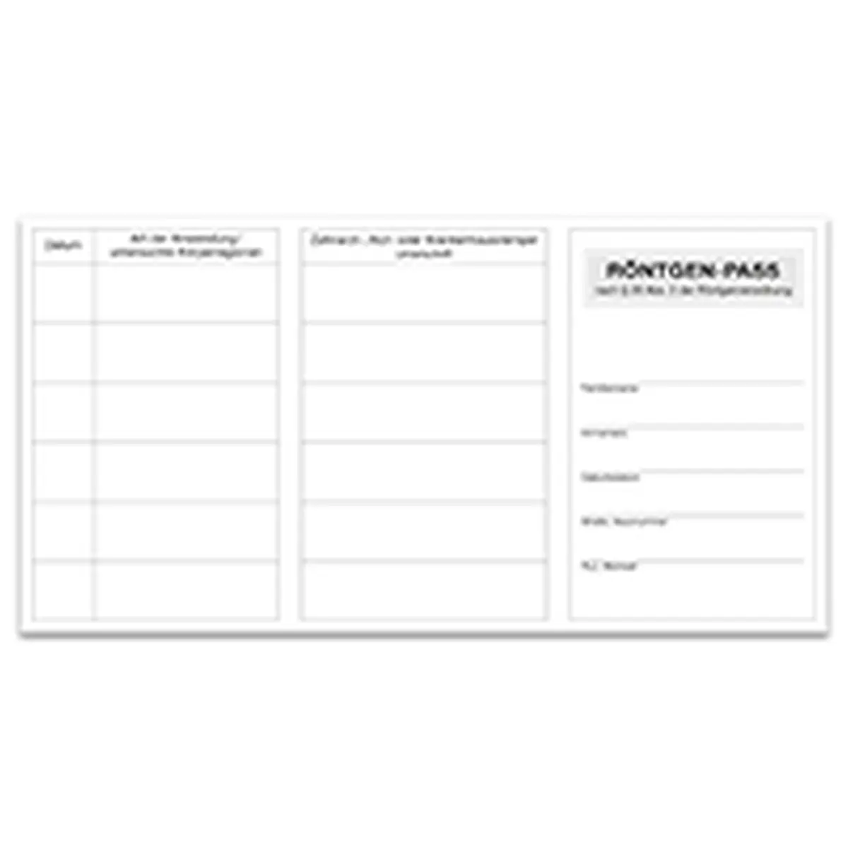 Röntgen-Pass, nach § 28 Abs. 2 RöV 210 x 108 mm, weiß, Neobond, 25 Stück