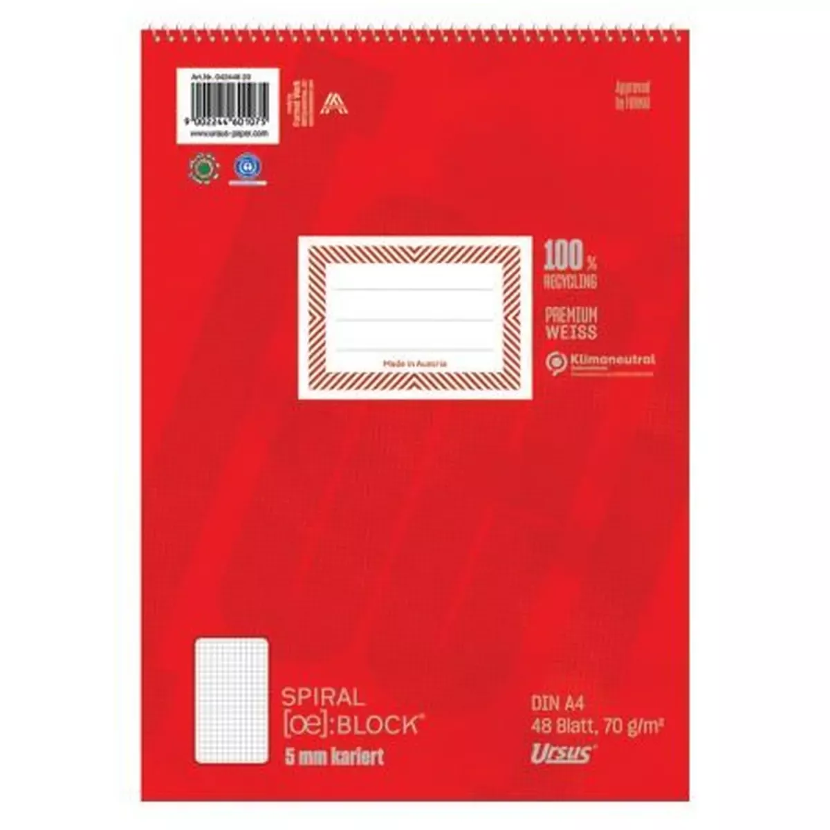 Spiralblock – A4, 48 Blatt, 70 g/qm, kariert