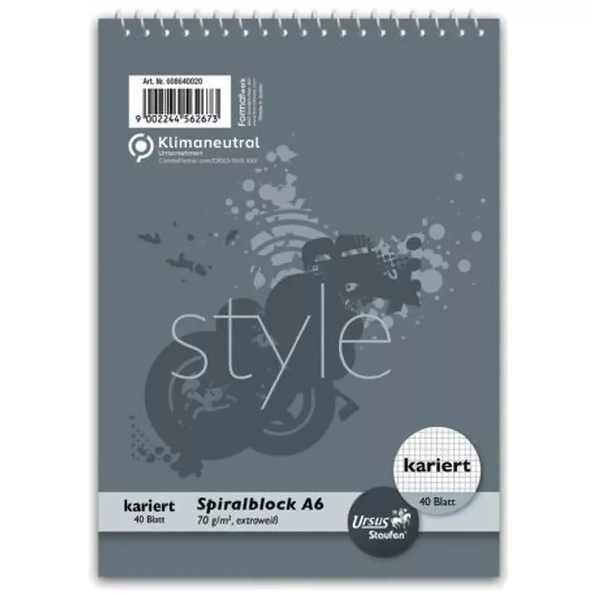 Spiralblock – A6, 40 Blatt, 70 g/qm, kariert