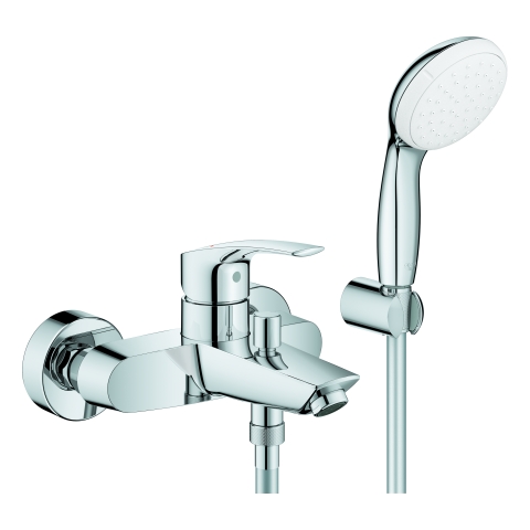 GROHE Einhand-Wannenbatterie Eurosmart 33302_3, mit Tempesta Wandhalterset, Wandmontage, Temperaturbegrenzer, S-Anschlüsse, eigensicher, chrom