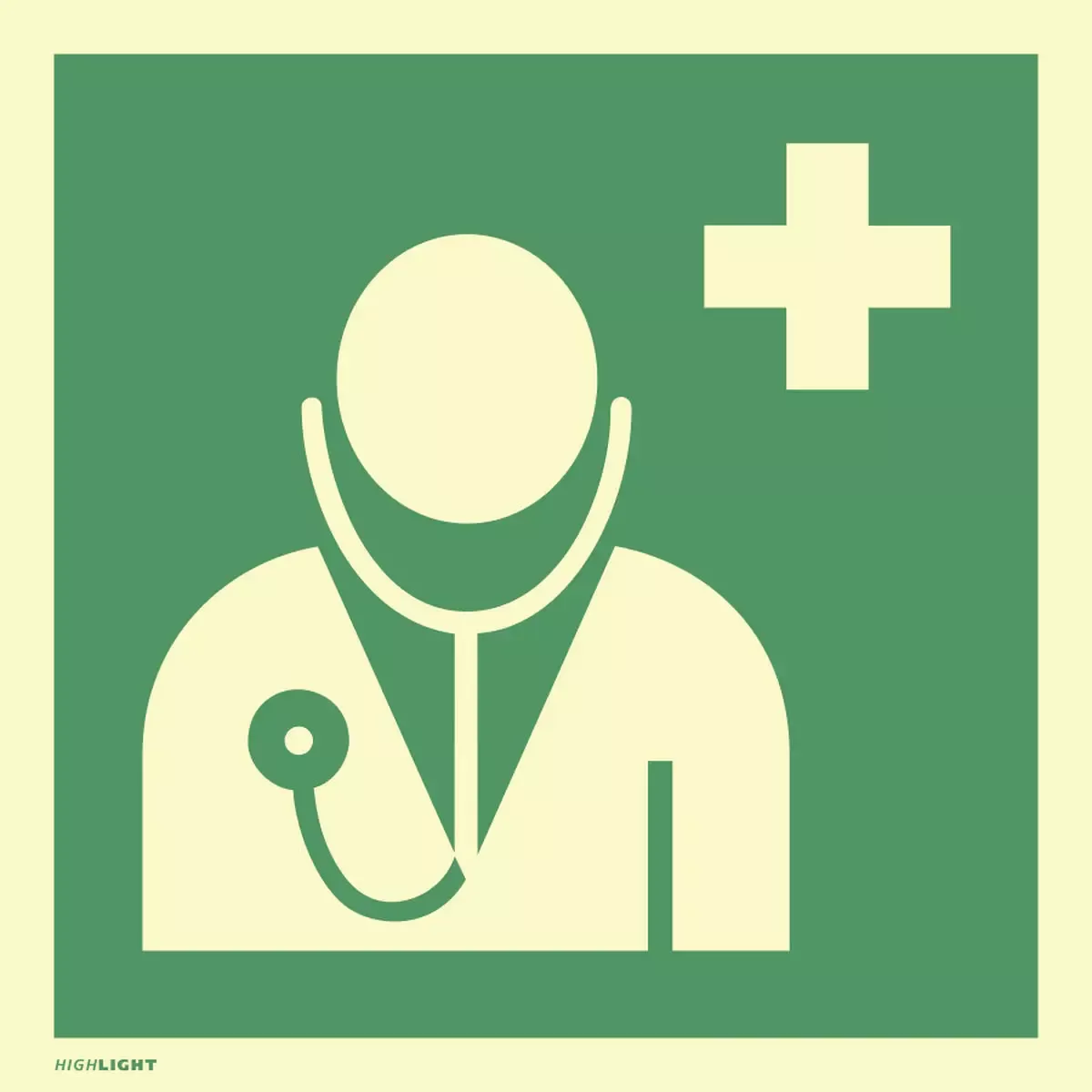 Arzt, ISO 7010, Folie, langnachleuchtend, 160-mcd, 148×148 mm