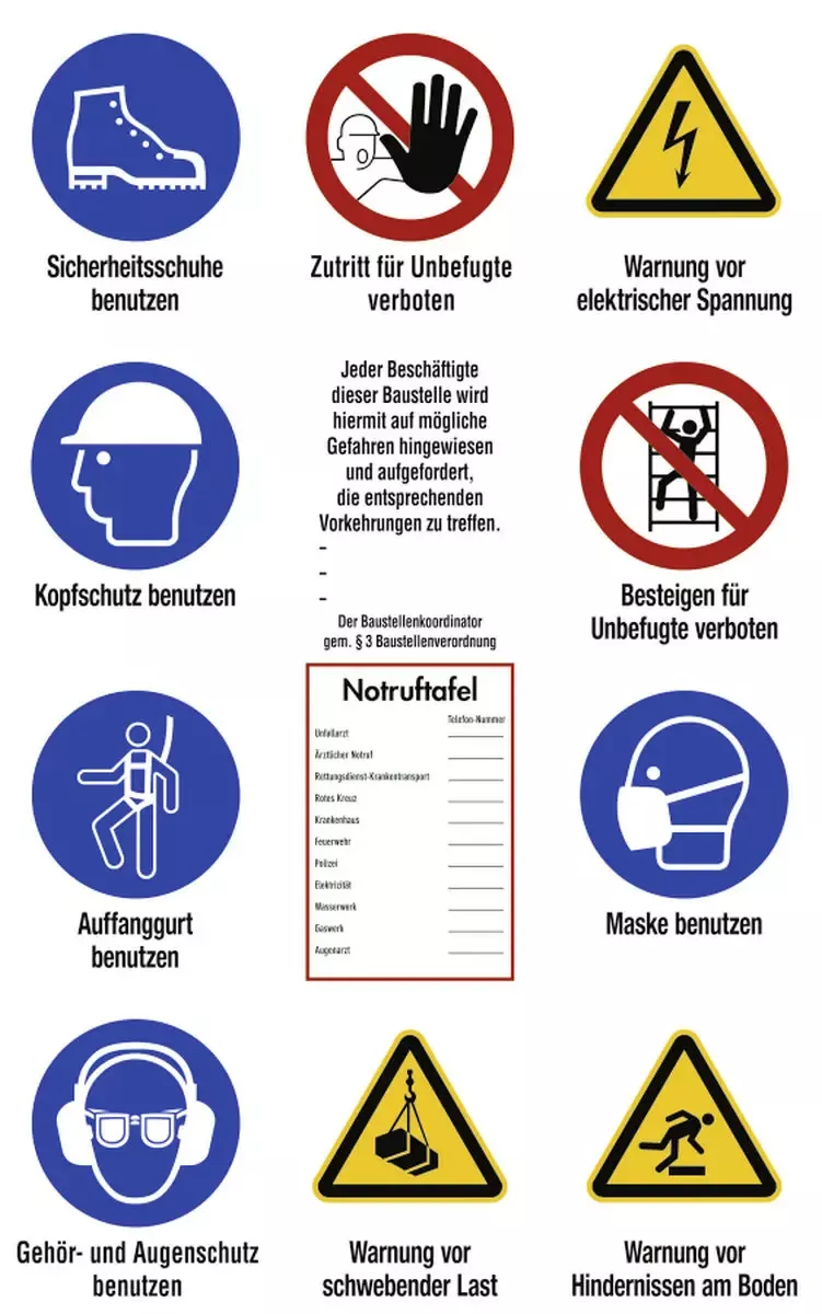 Baustellen-Sicherheitsschild nach ISO 7010, Planenstoff, 750×1200 mm
