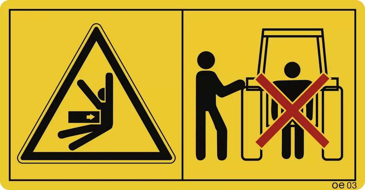 Ausreichend Abstand zu drehenden Maschinenteilen…, Folie, 116×60 mm, 2 St./Bo.