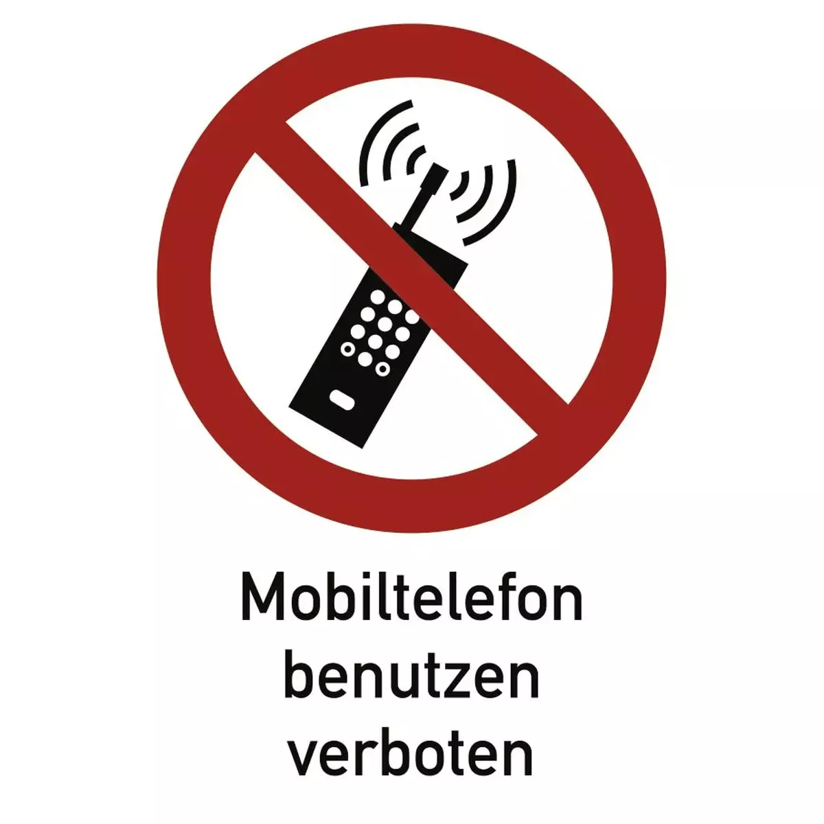 Eingeschaltete Mobiltelefone verboten ISO 7010, Kombischild, Folie, 131×185 mm