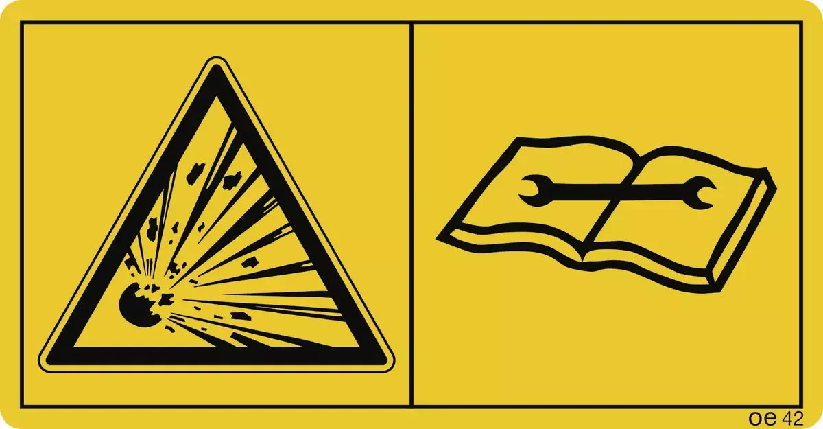 Druckspeicher steht unter Gas- und Öldruck, Folie, 116×60 mm, 2 Stück/Bogen