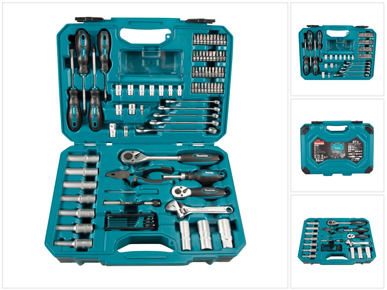 Makita Handwerkzeug Set 87 tlg. Chrom Vanadium Stahl ( E-08458 ) Bit / Zange / Ratsche / Schraubendreher / Schraubenschlüssel