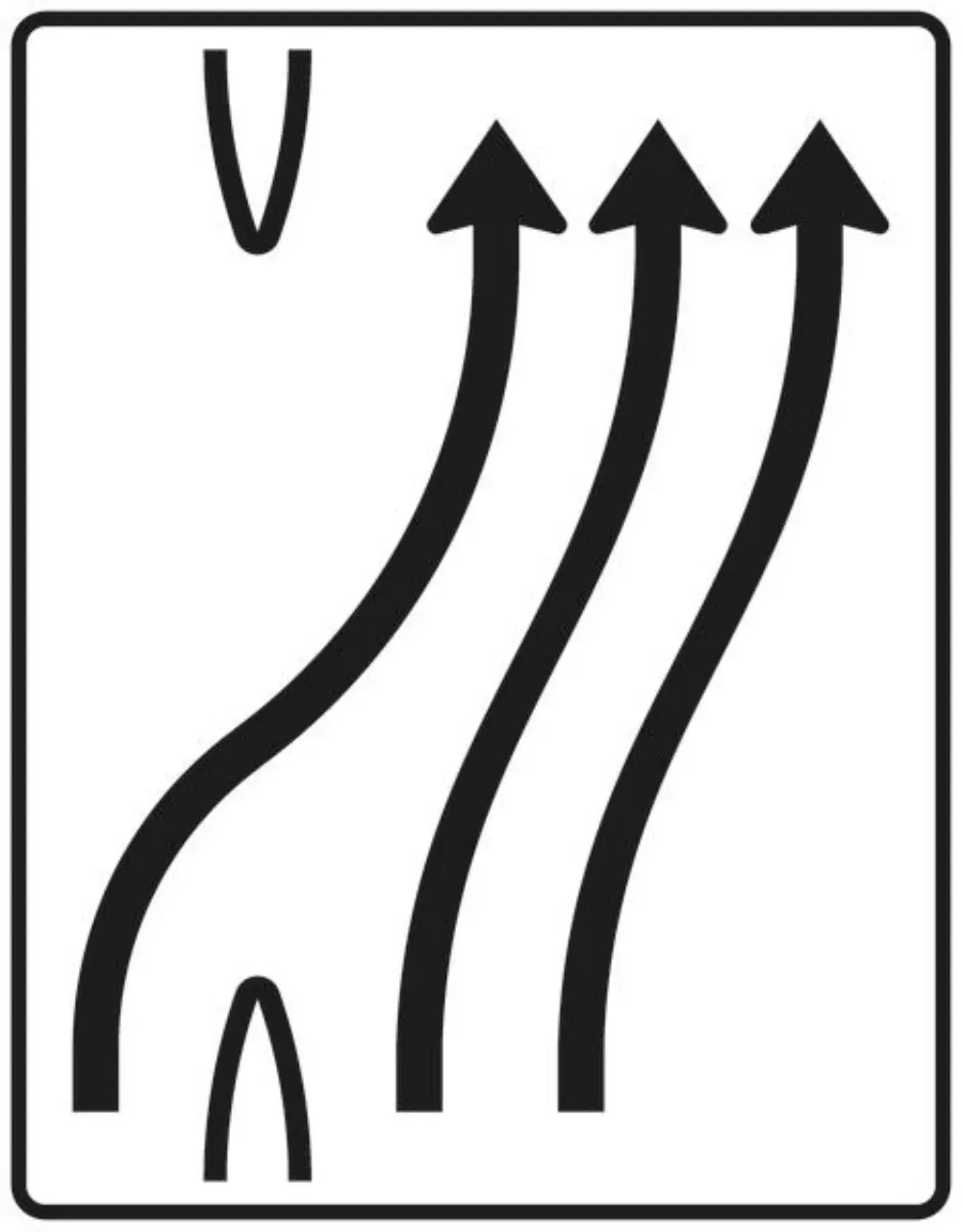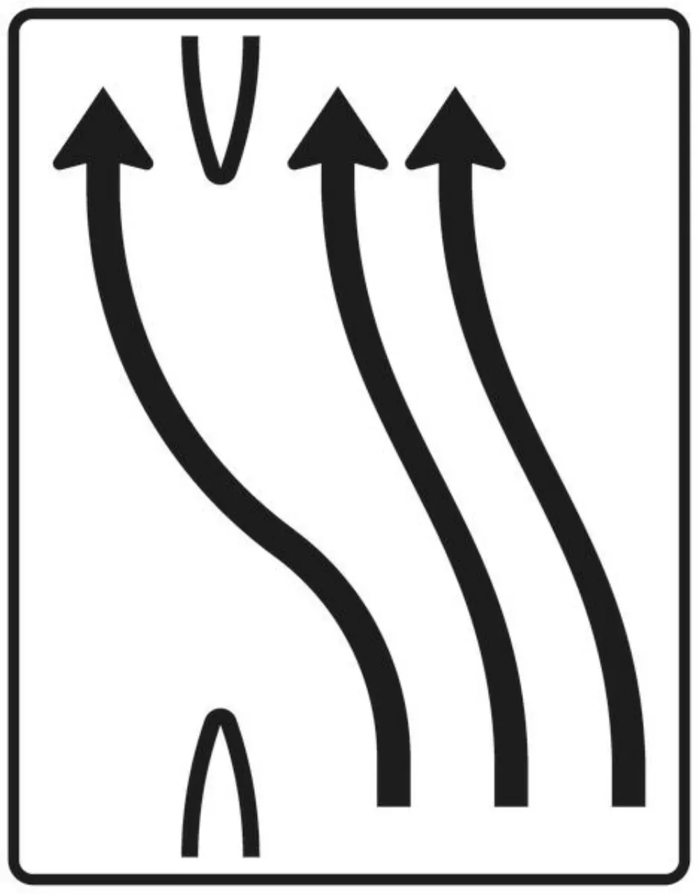 Verkehrszeichen 551-24 Zusammenführungstafel – an einmündender Strecke – einstreifig einmündend plus dreistreifig durchgehend; neues Zeichen – 1600×1250 3 mm RA1