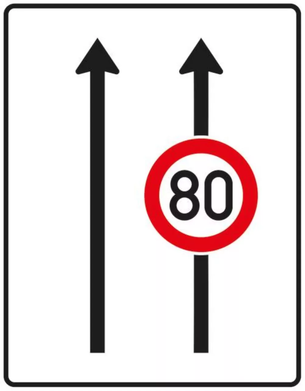 Verkehrszeichen 523-30 Fahrstreifentafel – ohne Gegenverkehr mit integriertem Zeichen 274 – zweistreifig in Fahrtrichtung; neues Zeichen – 1600×1250 3 mm RA1