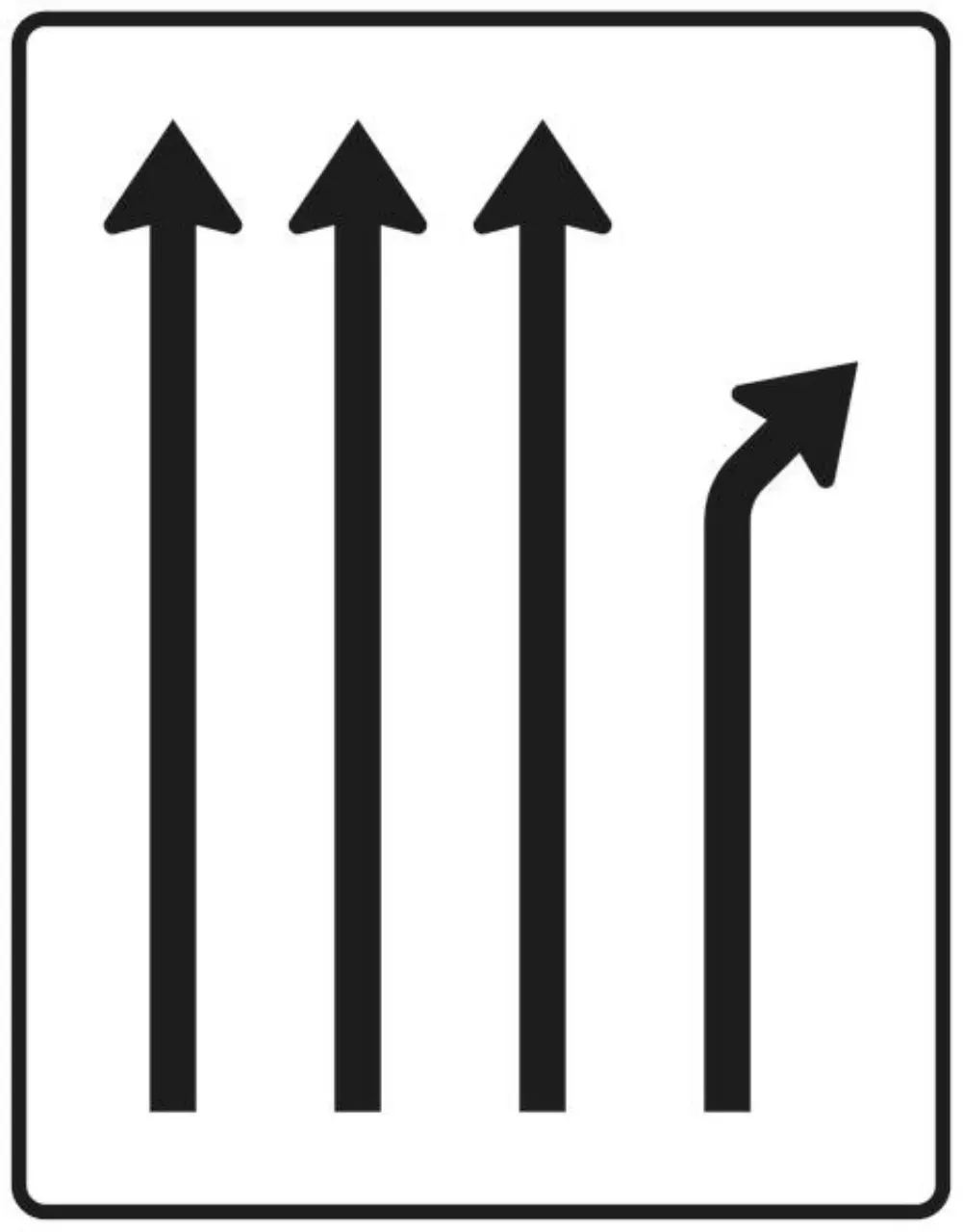 Verkehrszeichen 501-24 Überleitungstafel – ohne Gegenverkehr – dreistreifig nach rechts, ein Fahrstreifen übergeleitet – 1600×1250 3 mm RA1