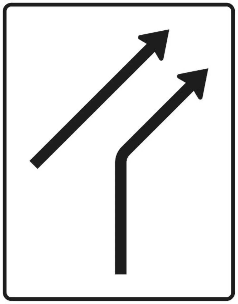 Verkehrszeichen 533-21 Trennungstafel – ohne Gegenverkehr – dreistreifig durchgehend und einstreifig rechts ab – 1600×1250 3 mm RA1