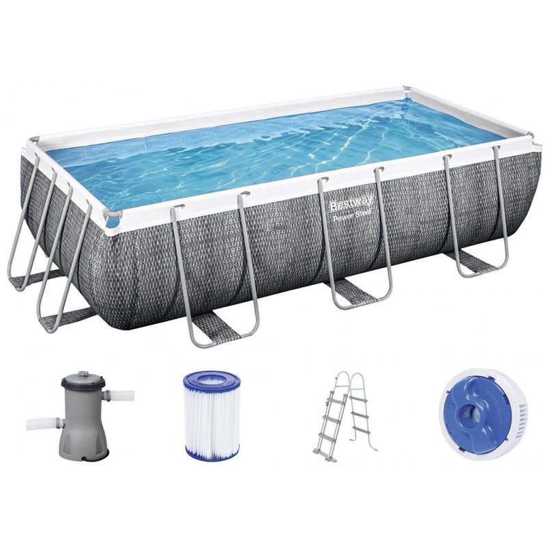 BESTWAY Power Steel Frame Pool-Set 412 x 201 x 122 cm, mit Filterpumpe, Rattan-Optik 56722€393.90Original price was: €393.90.€78.78Current price is: €78.78.