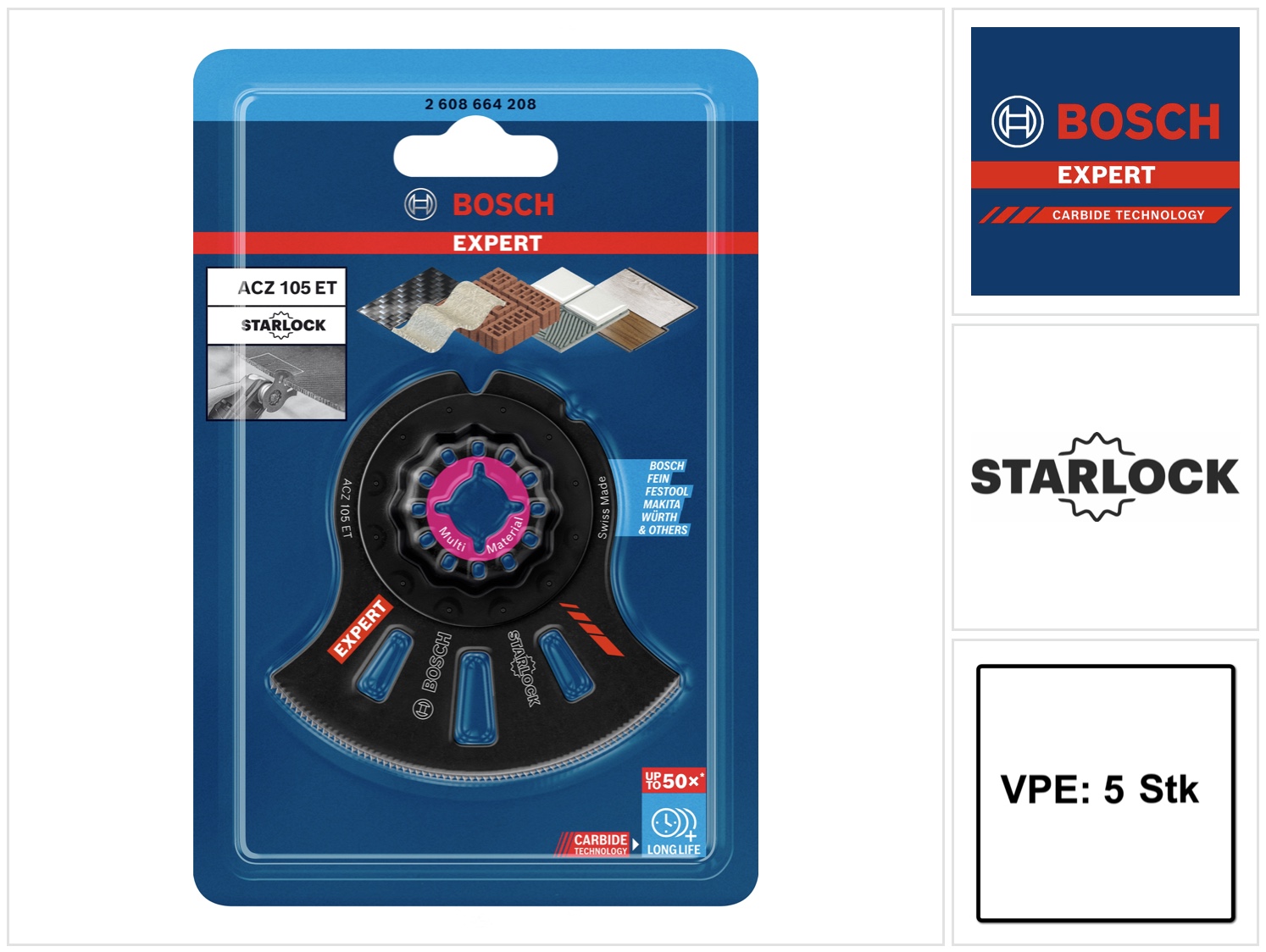 Bosch EXPERT Multi Material ACZ 105 ET Segmentsägeblatt Starlock 105 mm 5 Stk. ( 2608664207 ) Carbide