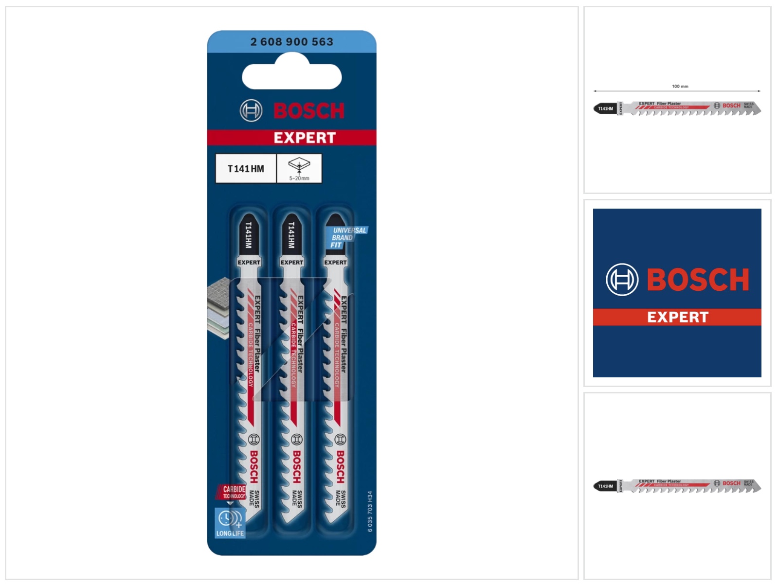 Bosch EXPERT Fiber Plaster T 141 HM Stichsägeblatt 100 mm 3 Stk. ( 2608900563 ) Carbide Technology