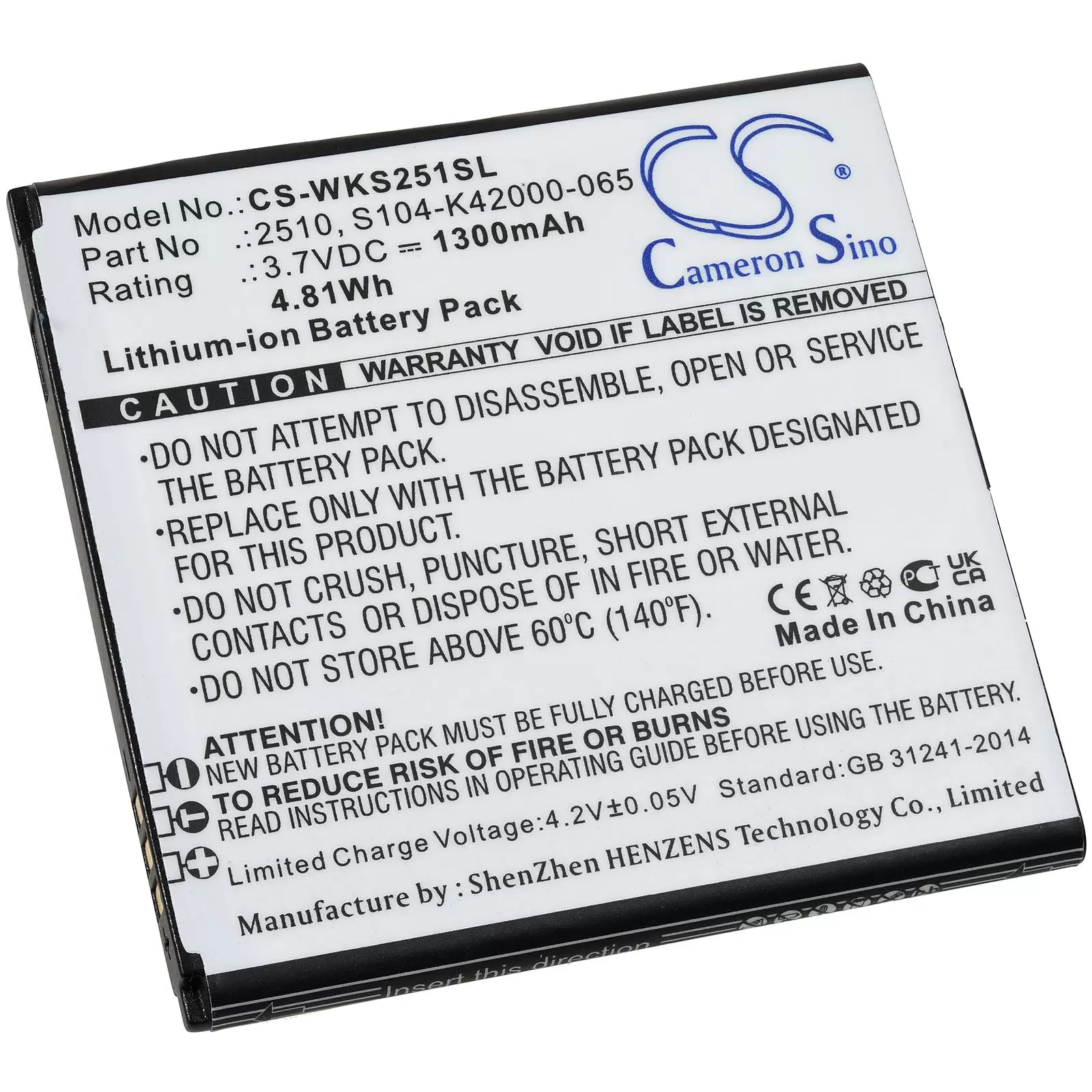 Akku passend für Handy, Smartphone Wiko Sunny 2, V2510, Typ S104-K42000-065