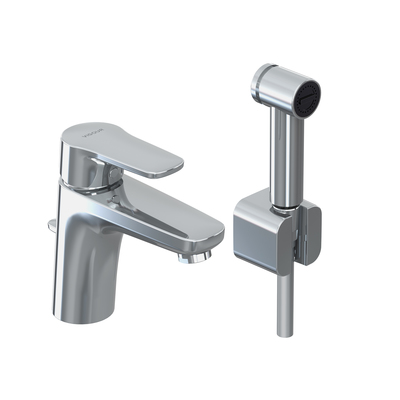 VIGOUR Einhand-Waschtischbatterie derby mit seitlicher Handbrause mit Ablaufgarnitur verchromt