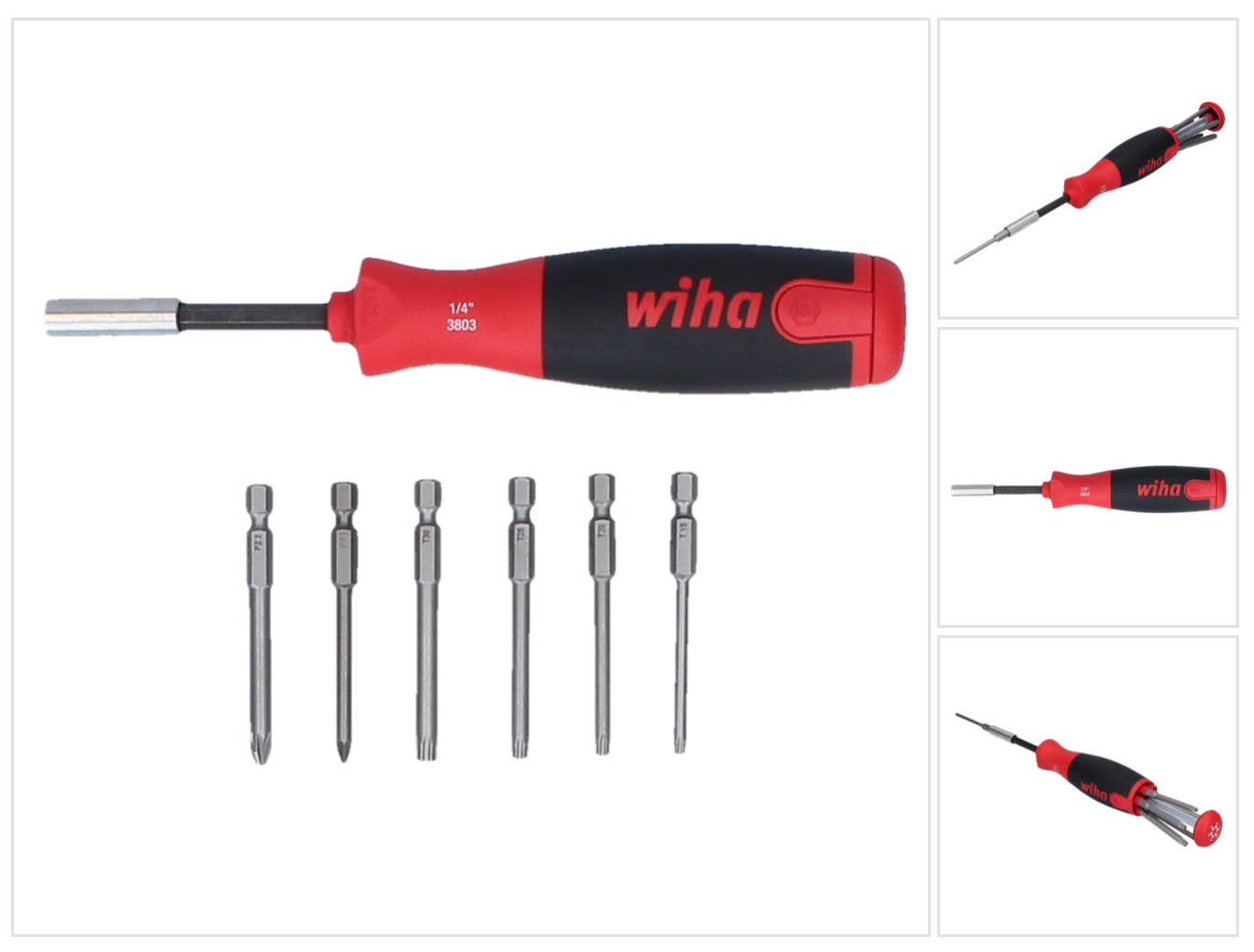 mit ergonomischen Mehrkomponenten-Kraftform-Griffen mit 6kant-Abrollschutz · Klingen aus Molybdän-Vanadium-Stahl Inhalt: je 1 Schraubendreher VDE-isoliert für Schlitzschrauben, 2,5 x 80 / 3,5 x 100 mm 1 Spannungsprüfer 3,0 x 70 mm 1 Schraubendreher für Schlitzschrauben, 4,0 x 100 mm je 1 Schraubendreher für Schlitzschrauben mit durchgehender 6kant-Klinge, Schlagkappe und Schlüsselhilfe, 5,5 x 100 / 7,0 x 125 mm 1 Schraubendreher für Schrauben mit Kreuzschlitz (PH), Gr. 2 x 100 mm je 1 Schraubendreher für Schrauben mit Kreuzschlitz (PZD), Gr. 1 x 80 / 2 x 100 mm je 1 Schraubendreher für Schrauben mit Innen-TORX®-Profil, Gr. T15 / 20 / 25